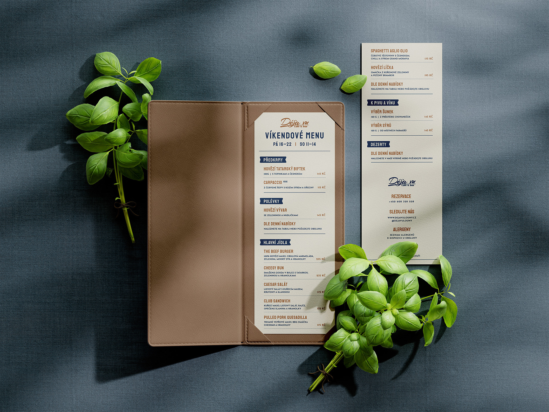 Pro úspěšný start restaurace bylo vytvořeno hned několik kompozičně rozdílných návrhů. Společně s provozovatelem jsme připravili přehledný A la carte lístek, který lze upravovat dle potřeby. Vzniklo současně několik formátů pro víkendové, týdenní i speciální nabídky.